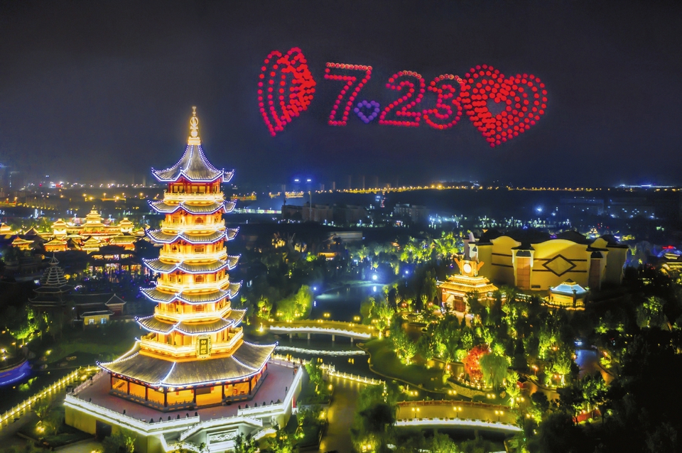 9月29日晚,游客在位于邯鄲市磁縣的方特國色春秋主題樂園景區游玩。河北日報通訊員韋科攝