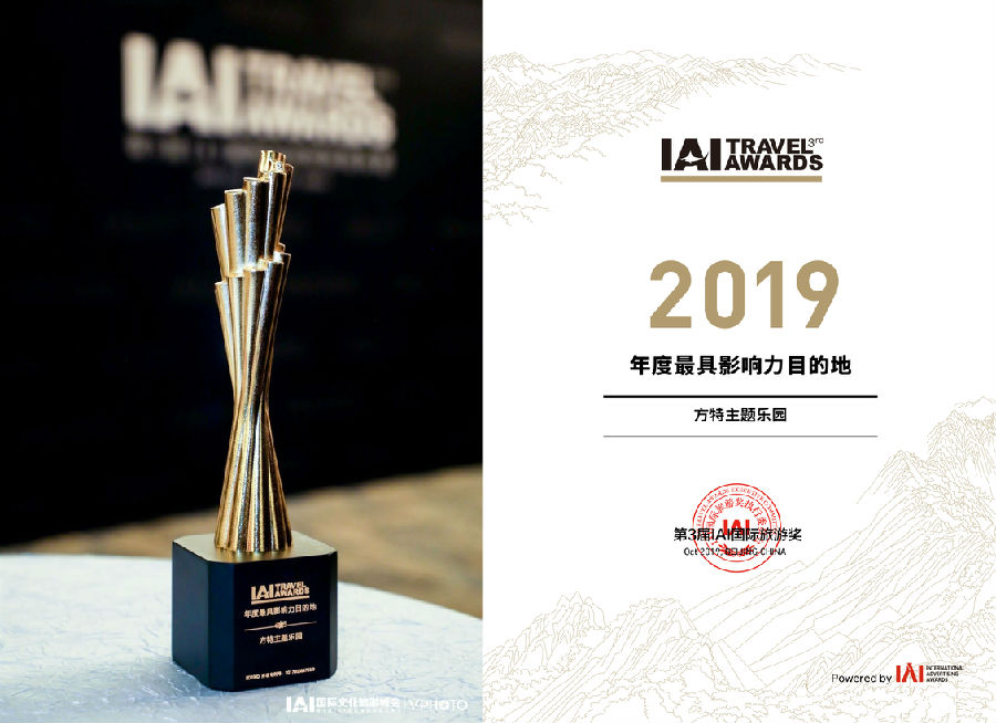 IAI國際旅游獎(jiǎng)旨在嘉獎(jiǎng)全球旅游營銷界年度創(chuàng)新并具有廣泛影響力的旅游營銷案例,是旅游營銷潮流趨勢的風(fēng)向標(biāo)。此次方特主題樂園獲頒IAI國際旅游獎(jiǎng)“2019年度最具影響力目的地”,體現(xiàn)出權(quán)威機(jī)構(gòu)對方特主題樂園卓越品質(zhì)和優(yōu)異成績的認(rèn)可。
