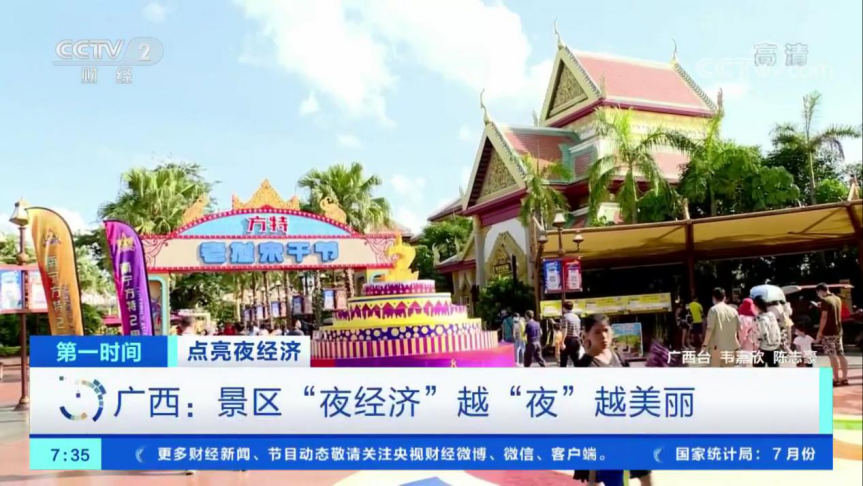 發(fā)展“夜經(jīng)濟”,夜間旅游是重點。華強方特旗下南寧方特東盟神畫主題樂園開啟了暑期“夜游東南亞”專場活動,不僅帶給游客全新的游玩體驗,也成為促進當?shù)匾菇?jīng)濟發(fā)展的全新動力。相關(guān)活動近日獲得央視聚焦,南寧方特精彩紛呈的夜間游園場面登上了央視多個頻道的新聞欄目。