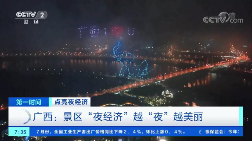 央視新聞報道顯示,夜場活動期間,“南寧方特每晚還有近500架無人機上演璀璨星空秀,各式各樣的圖案在夜幕中綻放,如同絢麗煙花點亮夜空,讓游玩的結(jié)尾變得儀式感滿滿”。