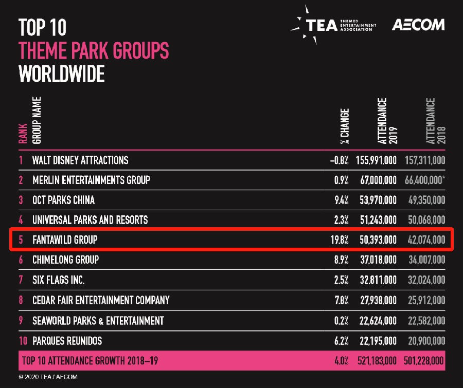 今年7月,在世界主題樂園權威研究機構國際主題娛樂協會(TEA)與美國AECOM集團聯合發布的《2019年度全球主題樂園和博物館指數》報告中,華強方特旗下主題樂園品牌“方特主題樂園”以5039.3萬人次的游客接待量,連續4年蟬聯全球五強;方特主題樂園2019年度的游客量同比增長近20%,增長率在上榜的前十主題樂園品牌中位列第一。
