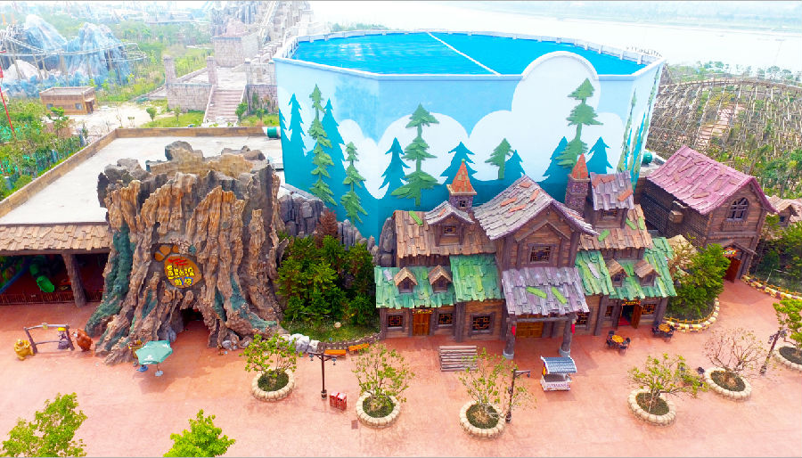 叢林、房屋、樹洞……這里儼然是一個(gè)真實(shí)的童話世界!從《熊出沒劇場(chǎng)》的建筑外觀開始,設(shè)計(jì)師就依據(jù) “熊出沒”動(dòng)漫作品原型,盡心打造劇場(chǎng)的實(shí)景。在劇場(chǎng)門口,清新自然的原生態(tài)叢林風(fēng)撲面而來,游客們?cè)谧哌M(jìn)劇場(chǎng)前,就可以提前感受原汁原味的“熊出沒”世界。
