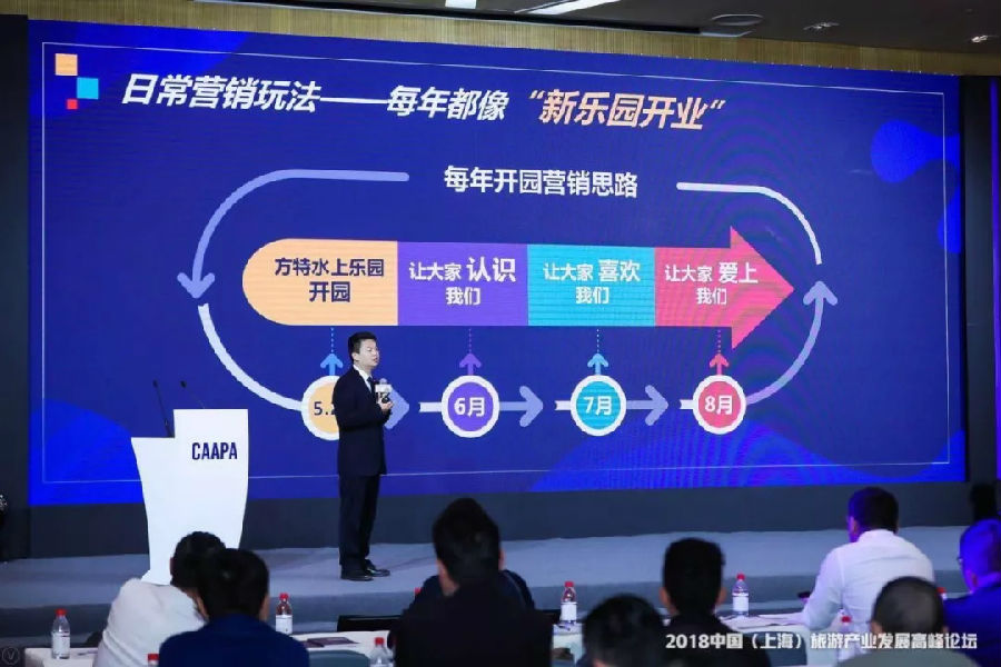 10月19日,2018中國旅游產業發展高峰論壇于上海開幕,千余名旅游行業的領袖精英、專家學者濟濟一堂,圍繞旅游產業、主題樂園、水上樂園、旅游景區二次消費等諸多議題展開深入探討,華強方特集團作為行業代表受邀參與。期間,華強方特集團高級副總裁丁亮、蕪湖方特副總經理佟興和華強方特(長沙)旅游發展有限公司總經理徐世友分別就特定議題發表主旨演講,受到與會各方的廣泛關注。