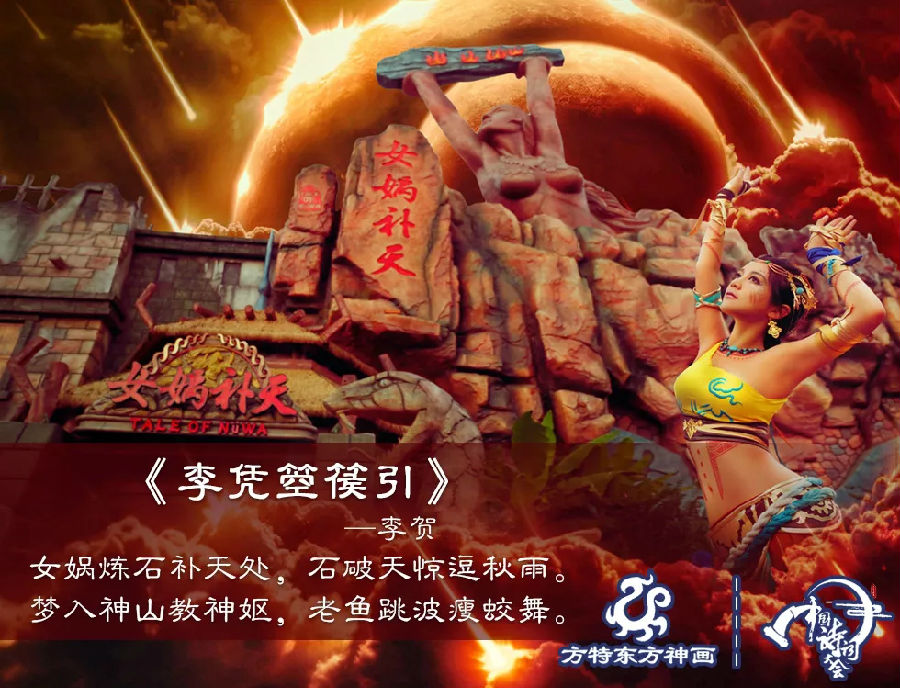 《女媧補天》乘坐多自由度動感游覽車,真實再現洪荒地界,追隨女媧開啟擊退巨怪、采石補天,開啟奇幻之旅。