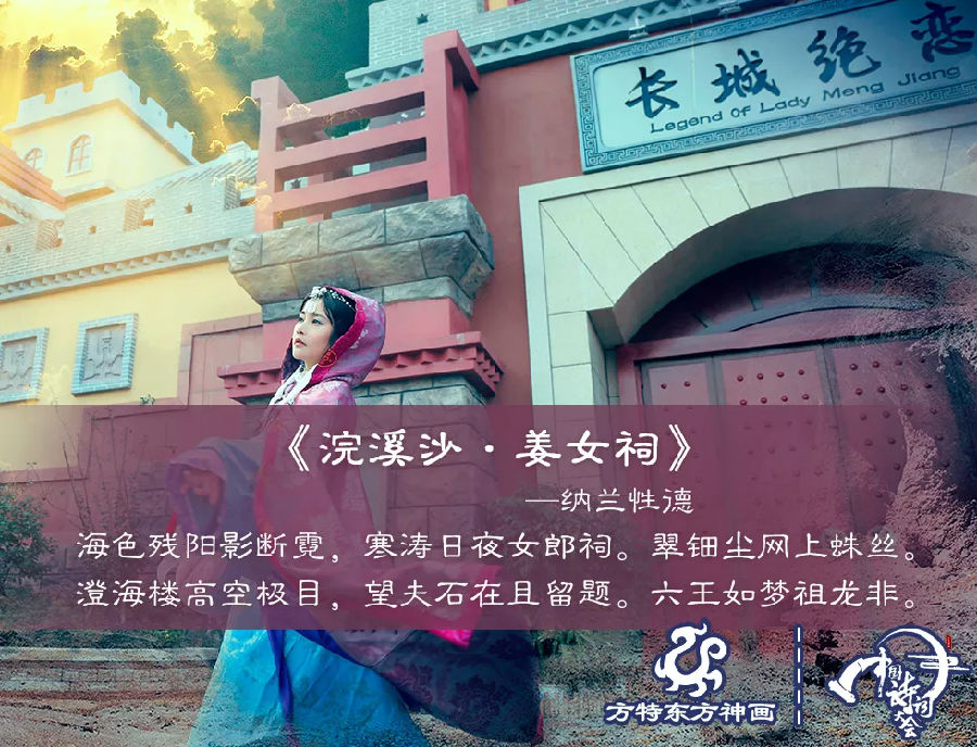 《孟姜女》以中國著名傳說“孟姜女哭長城”為題材,通過真人表演與建筑投影、程控運動物體矩陣等高科技手段相結合的表演方式,演繹凄美而堅貞的愛情故事。