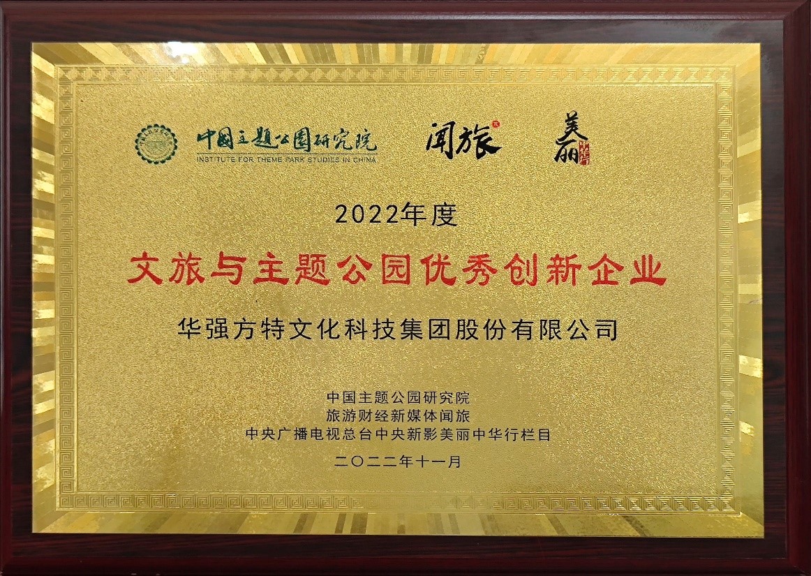 近日,由中國主題公園研究院、華東師范大學工商管理學院休閑研究中心、上海師范大學休閑與旅游研究中心聯合舉辦的《2022中國主題公園競爭力評價報告》發布會暨“2022中國主題公園發展高峰論壇”在上海舉行。華強方特集團與旗下方特主題樂園獲得“文旅與主題公園優秀創新..