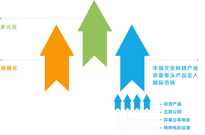黨的十八大報告提出,促進文化和科技融合,發展新型文化業態。 “十三五”規劃綱要明確“推動文化產業成為國民經濟支柱性產業”的目標要求。作為中國文化科技領軍企業,華強方特深入貫徹黨中央精神指示,堅持文化科技融合發展,深化創新引領驅動,以講好中國故事為己任,國際范圍傳播中國文化,創新打造“創、研、產、銷”一體化產業鏈,實現文化科技產業規?;?、多元化、國際化創新發展。
